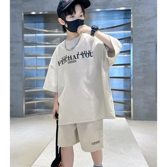 Boys' Summer 2-Piece Letter Tshirt & Shorts Set