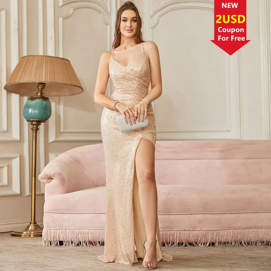 Sparkly Champagne Sequin Mermaid Evening Dress