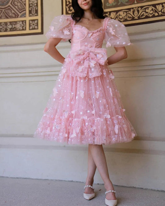 Msikoods Pink Flower Fairy Prom Dress