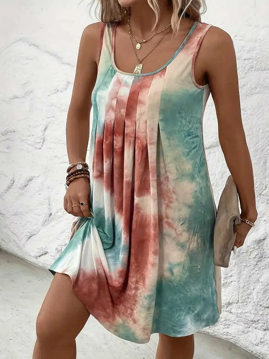 Women's Chic Tie-Dye Pleated A-Line Dress
