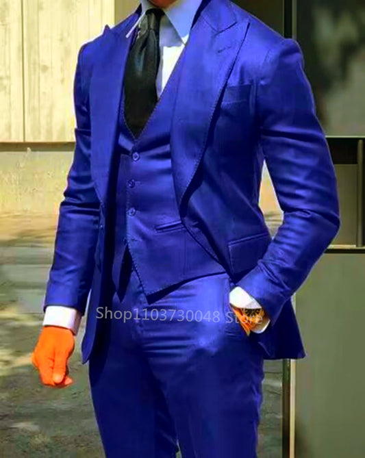 One Button Peak Lapel Slim Fit Men's 3 Piece Suit