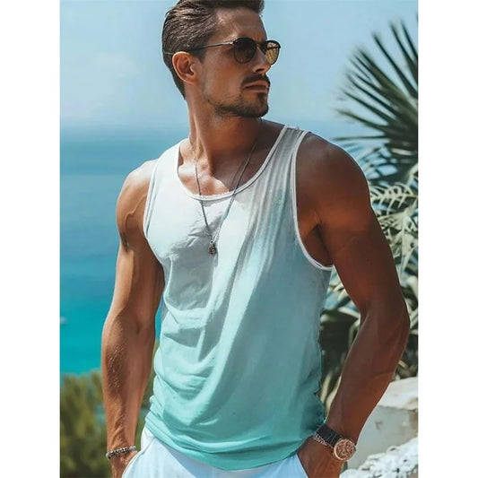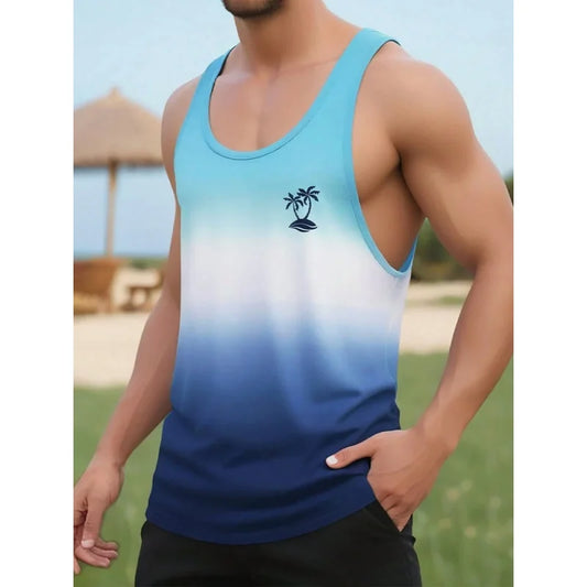 3D Printed Colorful Gradient Tank Tops For Man Coconut Tree Pattern Tees Summer Casual Vest Oversized Sportswear Street Tank Top