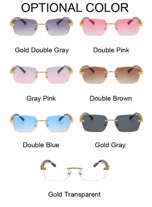 Retro Square Rimless Sunglasses Fashionable Wooden Gradient Eyewear