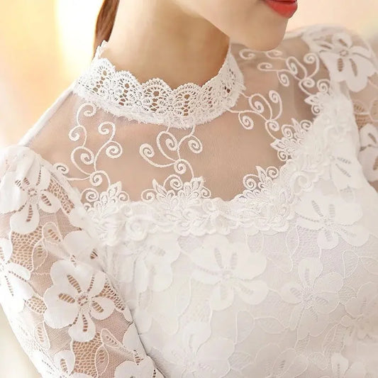 Women's Lace Slim-Fit Turtleneck Organza Blouse