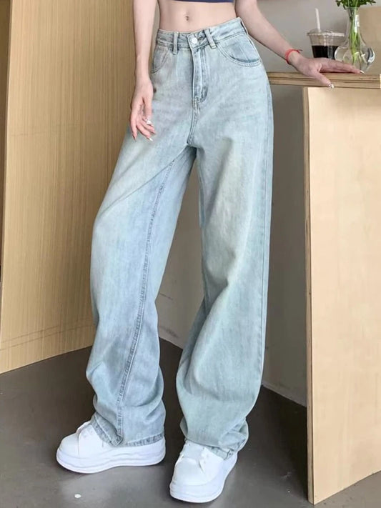 Vintage Washed High Waist Loose Straight Leg Jeans