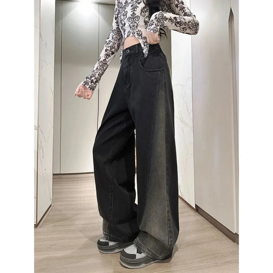 Women's Loose Slimming Straight Leg Patchwork Jeans