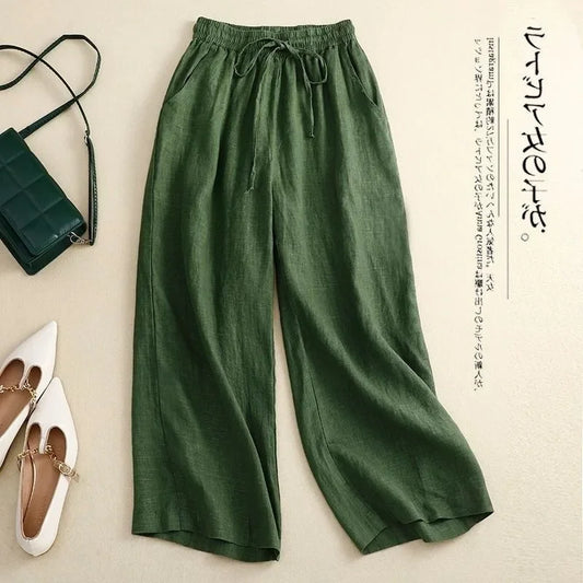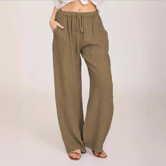 Women's Elastic Loose High Waist Drawstring Linen Pants