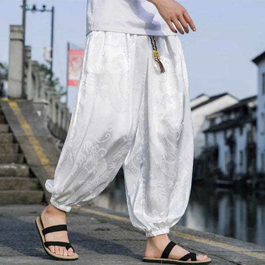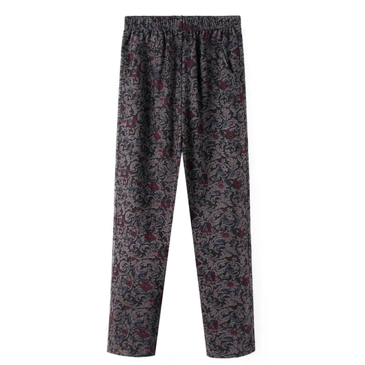 Women's Wide Leg Elastic Floral Tribal Print Pants Trousers