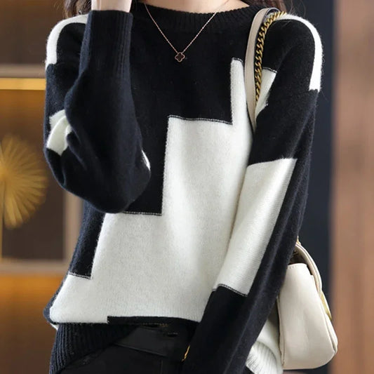 Women's Loose Knitted Bottoming Patchwork Sweater