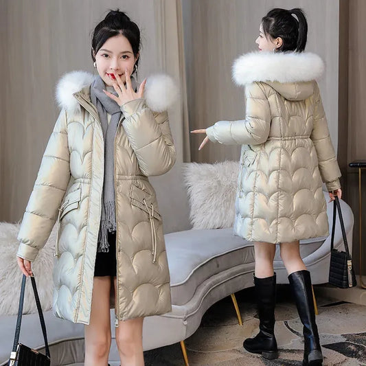 Women's Hooded Fur Collar Parka Stylish Winter Overcoat