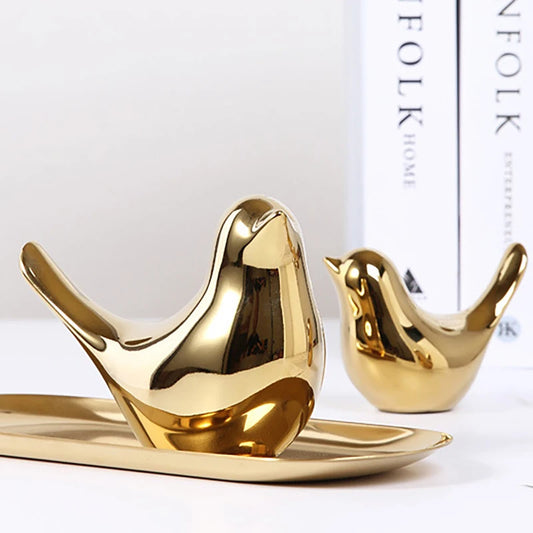 Nordische goldene Vogelfigur aus Keramik in 4 Größen