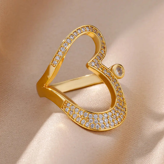 Ineinander verschlungene Herz Zirkon Ringe Frauen Edelstahl