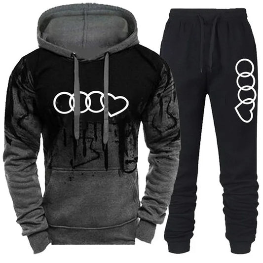 Trainingsanzug für Herren mit modischem Aufdruck: Kapuzenpullover mit Reißverschluss und Jogginghose
