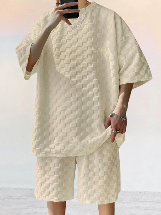 Sommerliches zweiteiliges Herren-Set mit Schachbrettmuster
