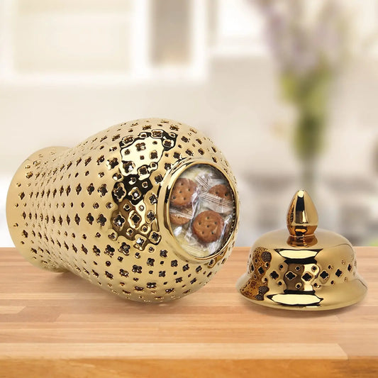 Goldene, durchbohrte Tempelglas-Keramik-Knospenvase für die Inneneinrichtung