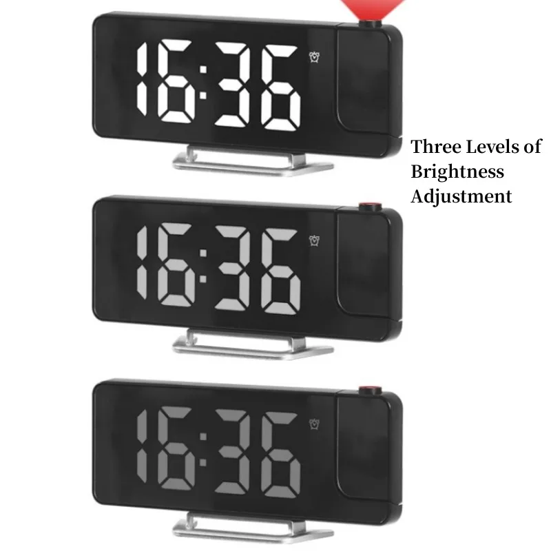 (1) Hochauflösende LED-Anzeige: Uhrzeit (12/24-Stunden-Systemumwandlung), Datum, Temperatur. Kann gleichzeitig die aktuelle Uhrzeit projizieren.