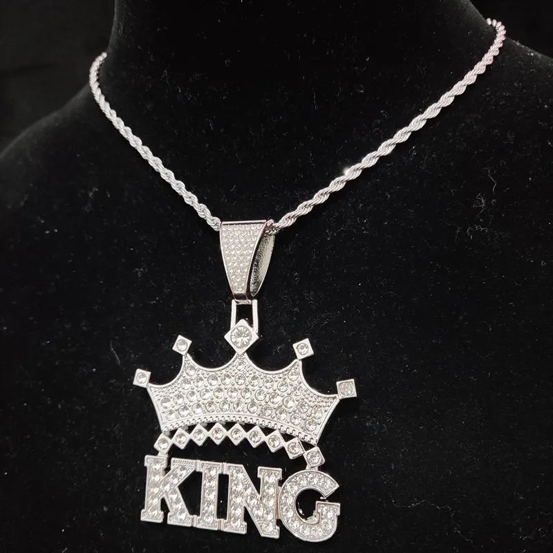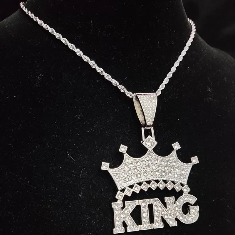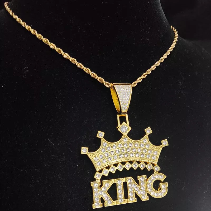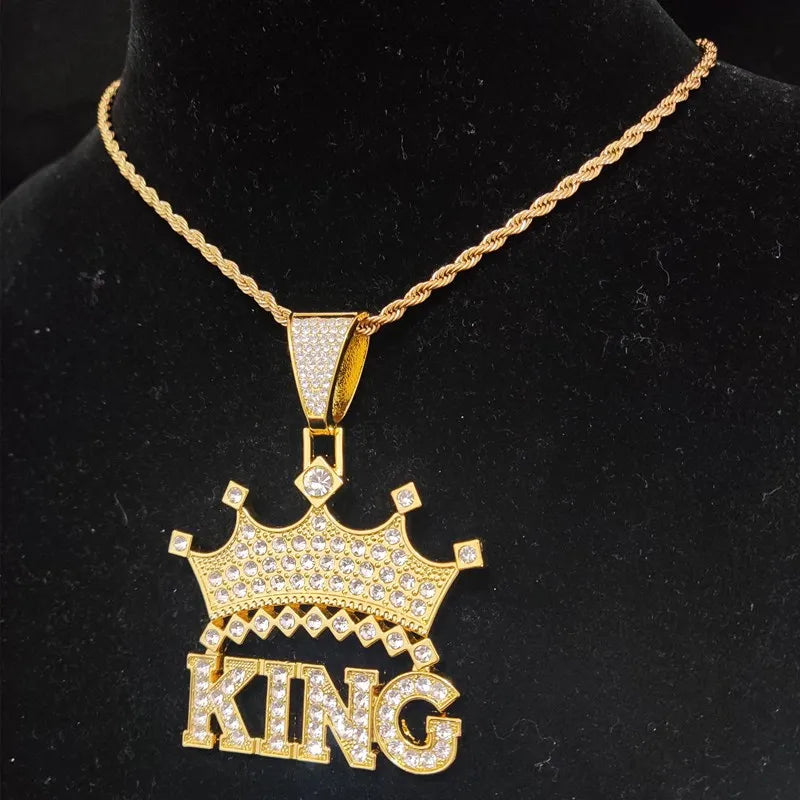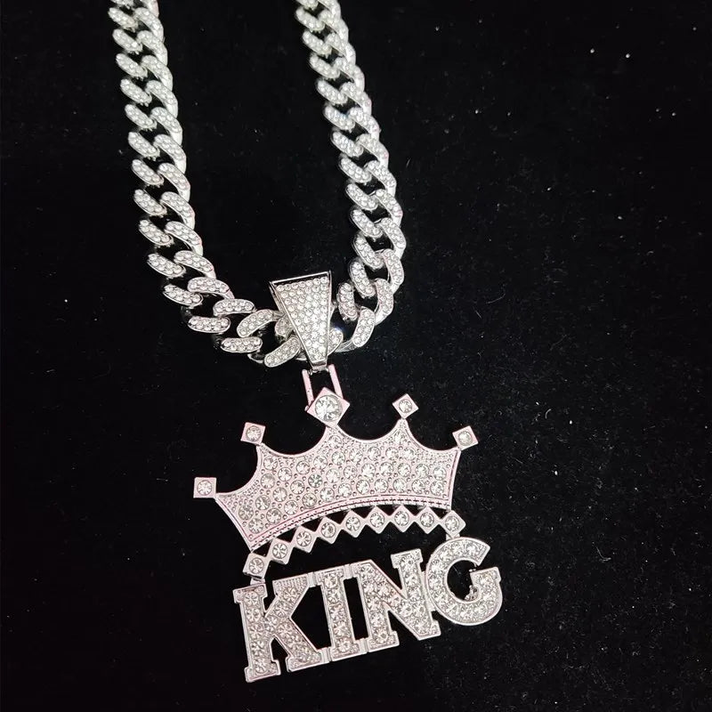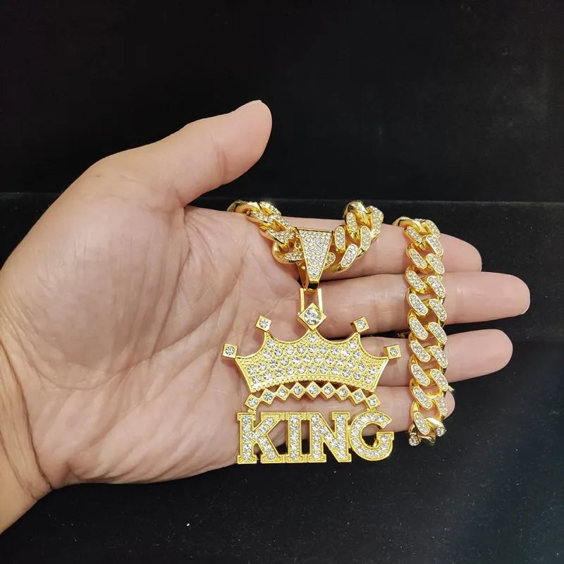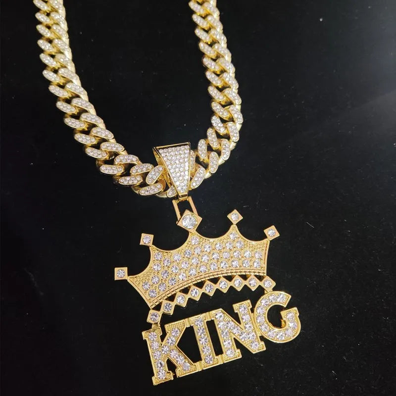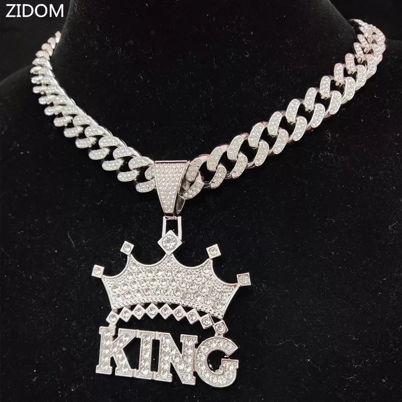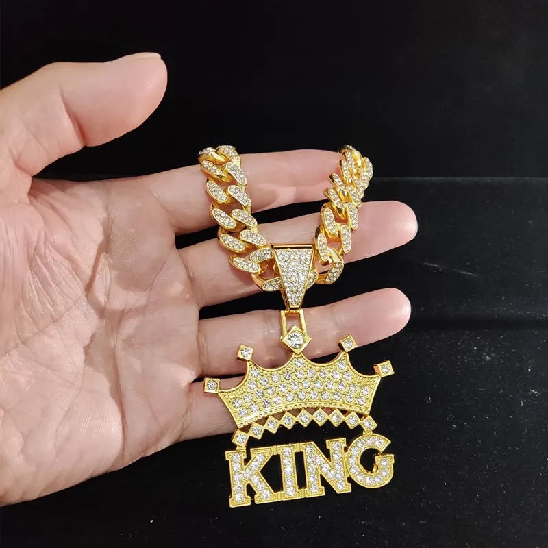 Männer Frauen Hip Hop Krone mit König Anhänger Halskette Kubanische Kette HipHop Iced Out Bling Halsketten Mode Charme Schmuck