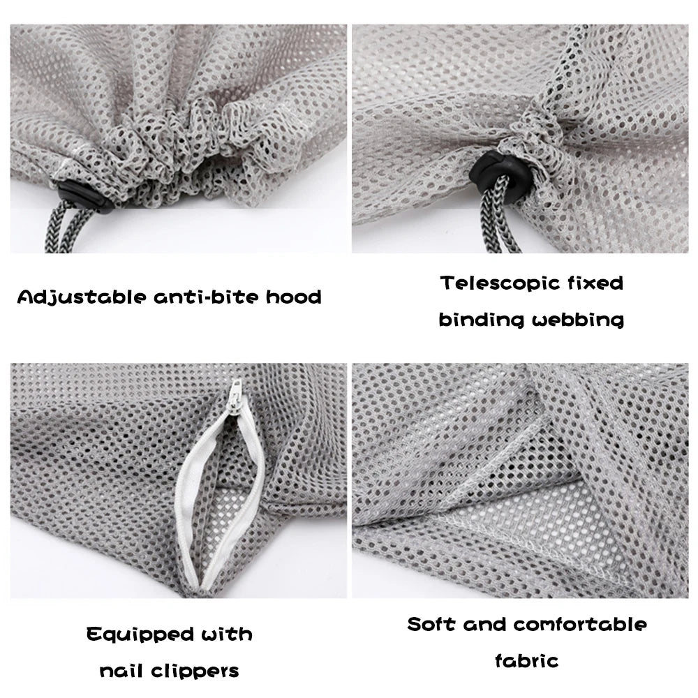 Diese Katzenduschtasche besteht aus weichem und atmungsaktivem Polyesternetz, ist kratz- und bissfest und langlebig. Hohe Luftdurchlässigkeit, leicht zu entleeren und zu trocknen.