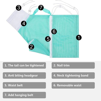 Die multifunktionale Katzenpflegetasche ist mit verstellbaren Riemen und Reißverschlüssen ausgestattet, die locker genug sind, um bequem an der Katze getragen zu werden. Das verstellbare Seil sorgt für ein angenehmes und ruhiges Gefühl der Katze, sodass Sie die Enge individuell anpassen können. Mit dieser Katzenbadetasche kann Ihre Katze problemlos zu Hause baden.