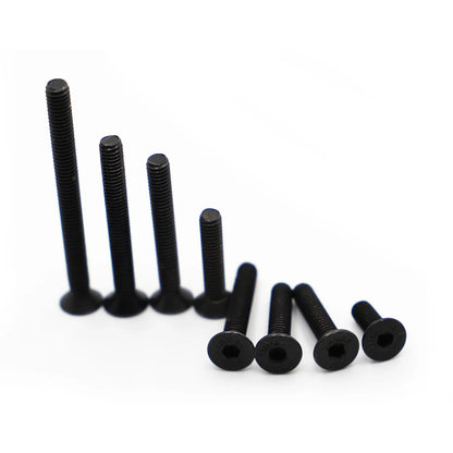 Dieses umfassende Set enthält schwarze Senkkopfschrauben aus Stahl der Güteklasse 10.9 gemäß DIN7991. Diese Schrauben sind in den Größen M2 bis M12 erhältlich und verfügen über einen Innensechskant, der eine sichere und bündige Befestigung gewährleistet. Ideal für verschiedene Anwendungen, die hochfeste und zuverlässige Verbindungen erfordern.