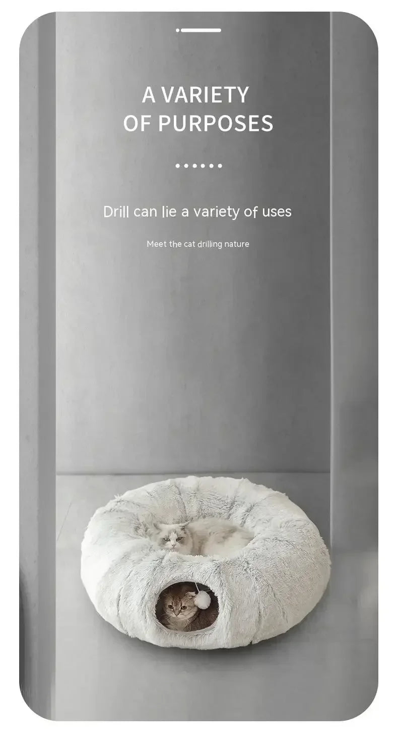 PLÜSCH-KATZENBETT MIT TUNNEL: Unser Plüsch-Katzen-/Hundebetttunnel bietet Ihrem pelzigen Freund einen gemütlichen und warmen Platz zum Entspannen und Schlafen. Das Plüschmaterial macht es weich und bequem und sorgt für ein ruhiges Nickerchen Ihres Haustiers.