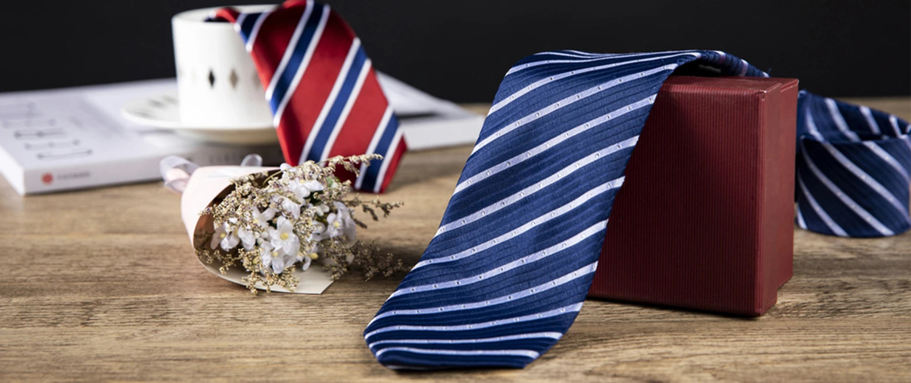 Handgefertigte blau-rot gestreifte Punktekrawatte für Männer