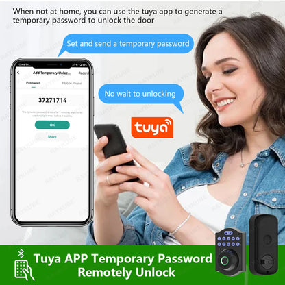 Verbessern Sie die Sicherheit Ihres Zuhauses mit dem RAYKUBE Tuya BLE Fingerabdruck-Riegelschloss. Genießen Sie Funktionen wie Fingerabdruckzugriff, App-Fernentriegelung und anpassbare automatische Sperrverzögerung. Dieses sichere und praktische Smart Lock unterstützt außerdem Passwörter und Schlüsseleingabe für vielseitigen Schutz.