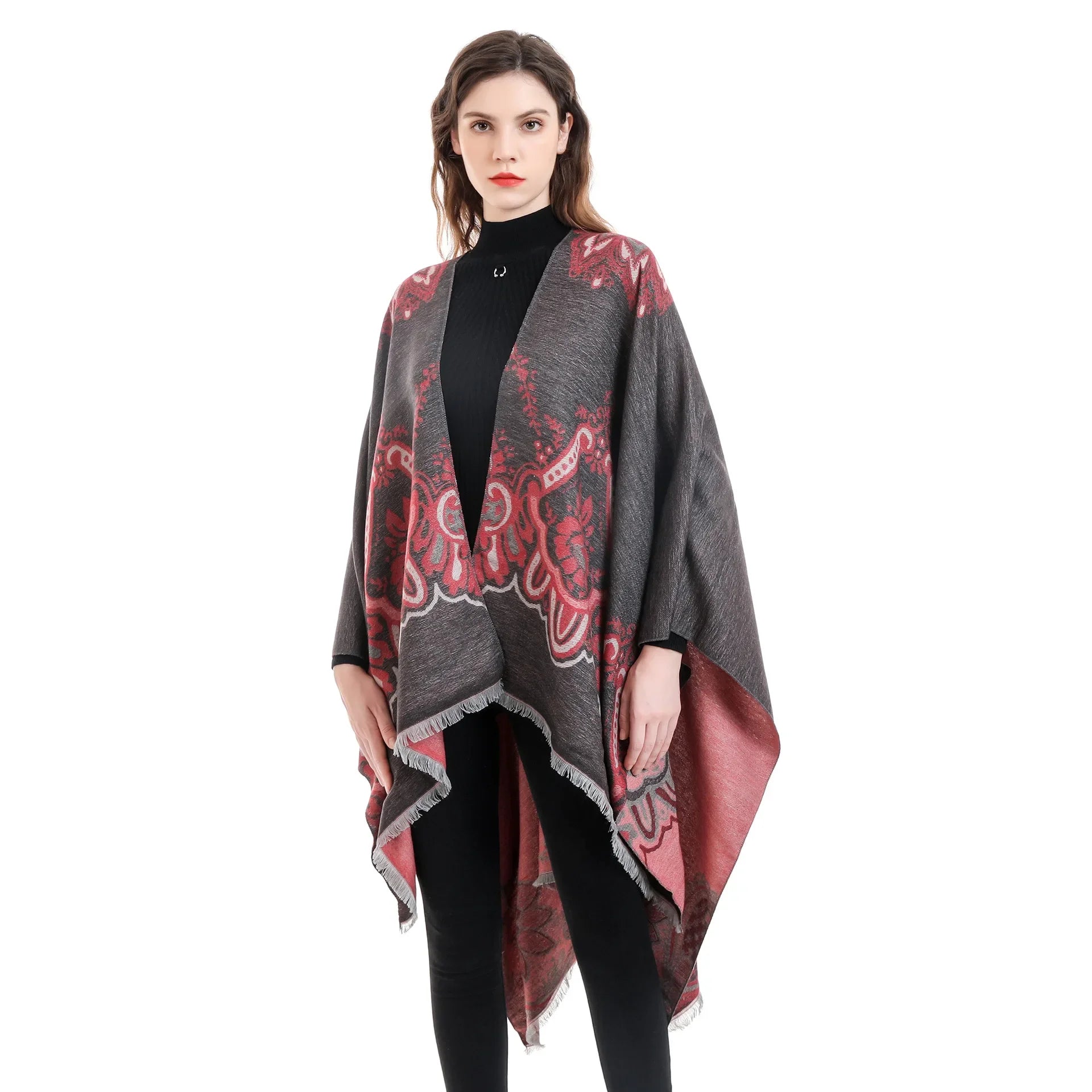 Vielseitiges Accessoire: Ob als Schal oder Cape getragen, dieses vielseitige Stück lässt sich auf vielfältige Weise verwenden, um Ihr Outfit aufzuwerten.