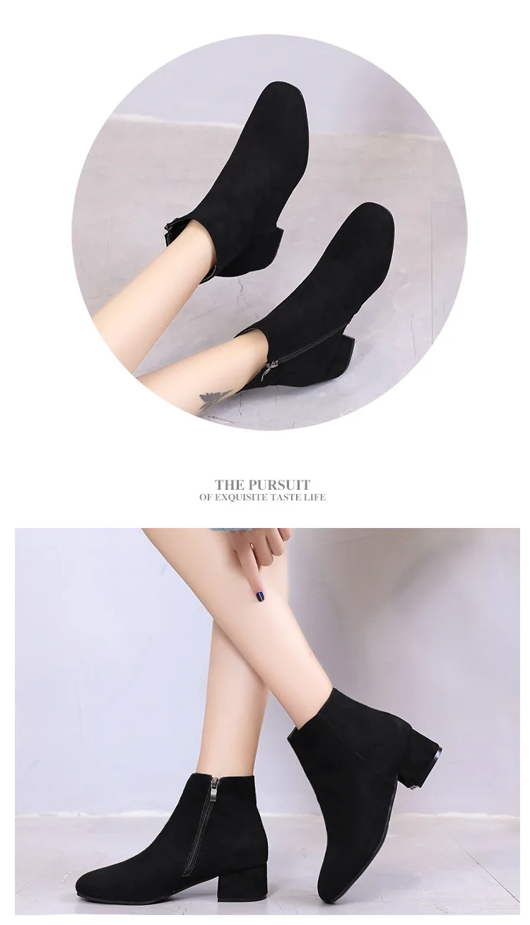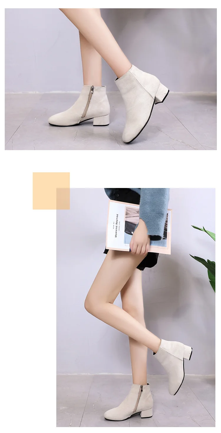 Mattierte Stiefeletten für Frauen Herbst Winter Neue Designer Schuhe Weibliche Einfarbig Britischen Stil Mittlere Ferse Mode Stiefel Damen