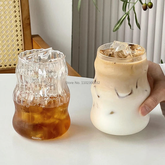 Ensemble de tasses en verre à rayures avec couvercle et paille