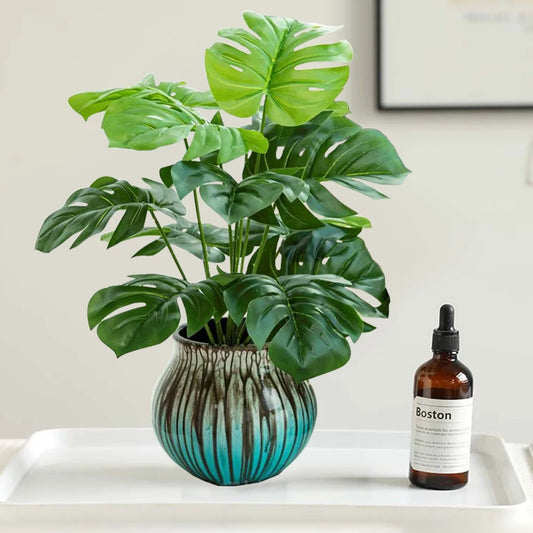 Branche artificielle de Monstera de 43 cm avec 12 feuilles de palmier tropicales