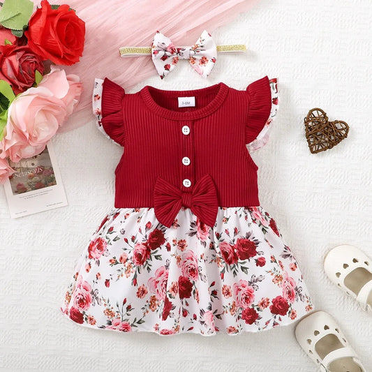 Vêtements sans manches à imprimé floral pour tout-petits - Robes d'été pour enfants