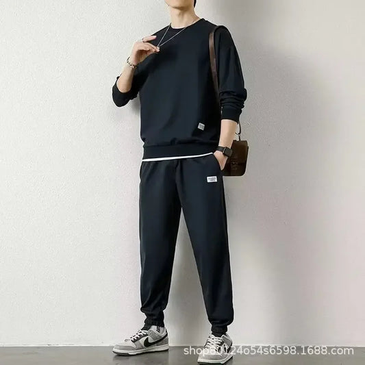 Survêtement de sport à manches longues et col rond pour hommes, printemps