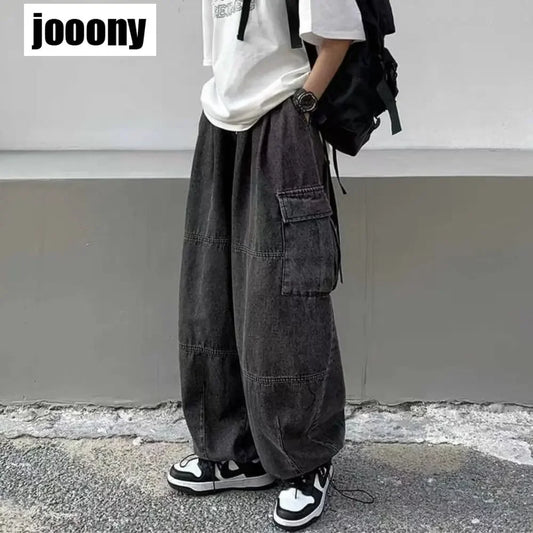 Jean Baggy pour homme Y2k Hip Hop Pantalon rétro noir vieilli