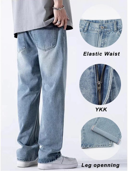 Jean en denim à jambe large décontracté pour homme, printemps-automne