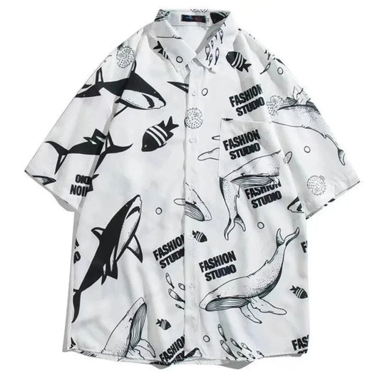 Chemise hawaïenne ample à imprimé dessin animé - Hauts à manches courtes