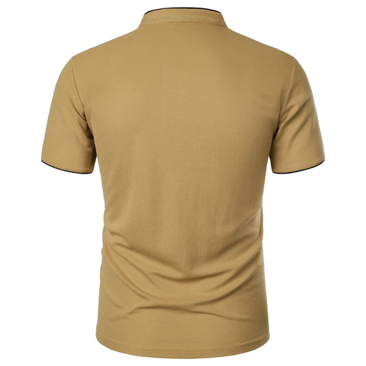 T-shirt à manches courtes et col montant pour homme, couleur unie