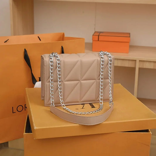 Sac à main pour femme à carreaux unis et orné d'une chaîne