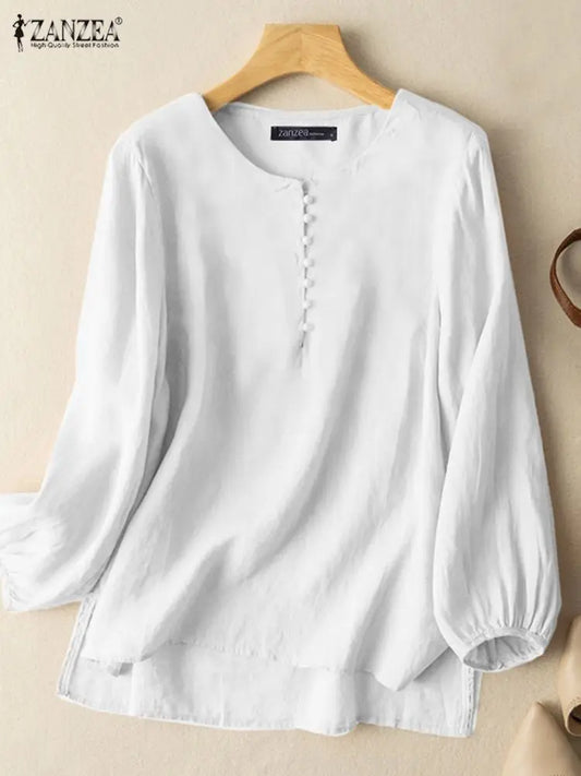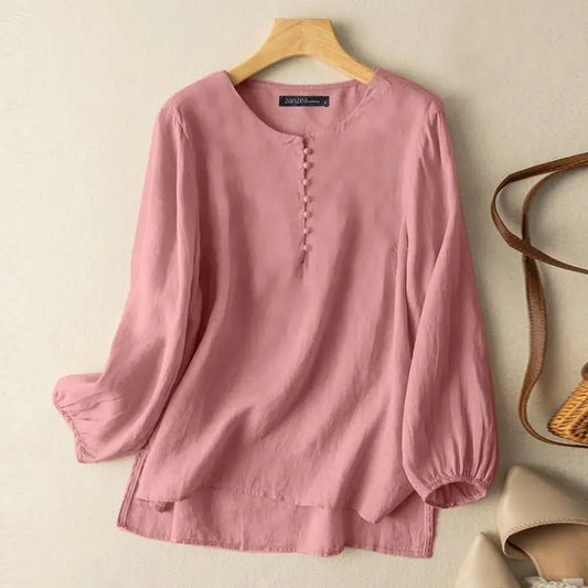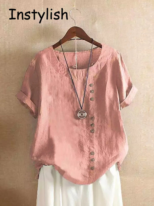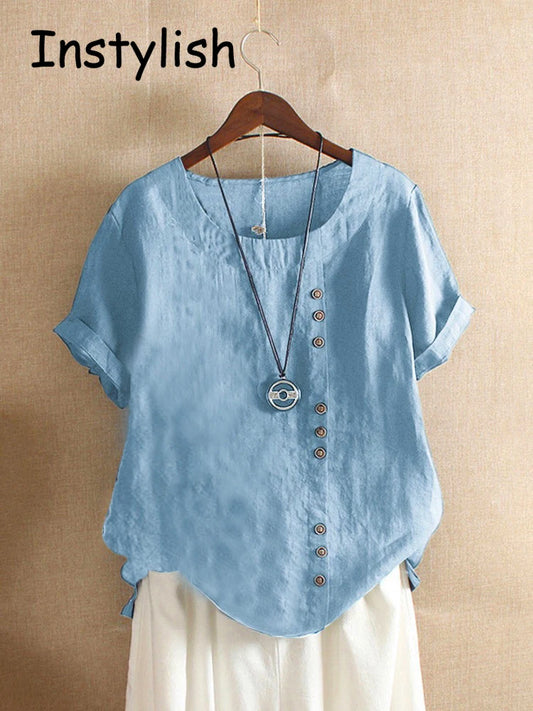 Hauts boutonnés en coton et lin non extensibles pour femmes