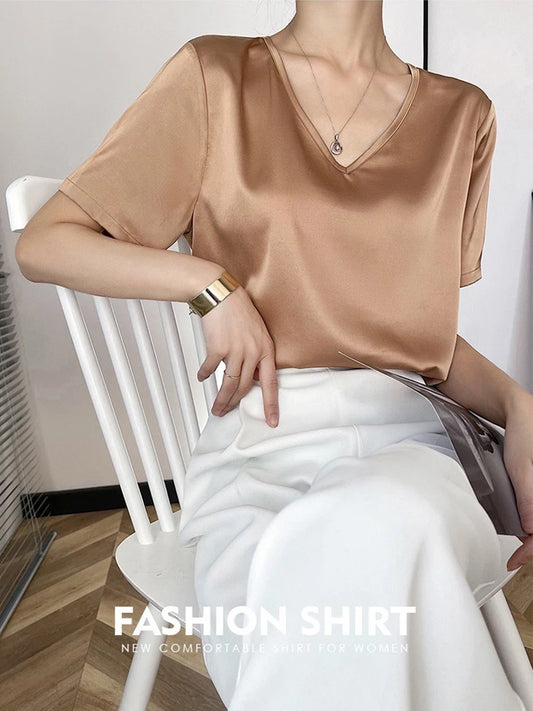 Hauts chemisier en mousseline de soie à manches courtes pour femmes