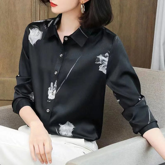 Chemisier imprimé à manches longues et col rabattu pour femme