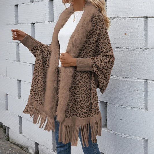 Élégante cape tricotée avec boucle en cuir pour l'automne/hiver