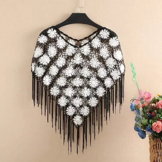 Manteau poncho à paillettes et pompons pour l'été pour les fêtes
