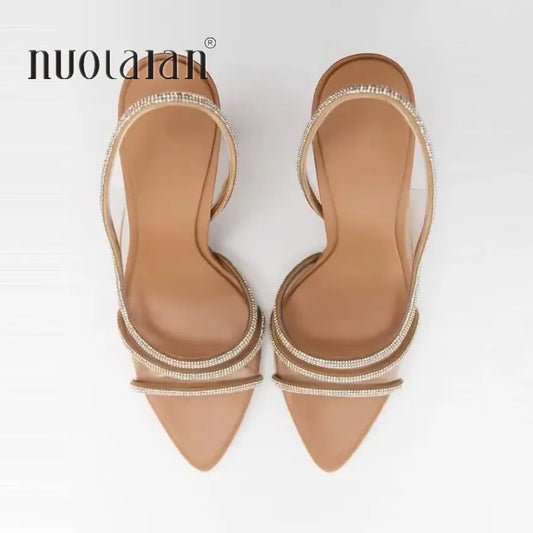 Escarpins à bride arrière en strass pour femmes - Talons hauts sexy pour femmes