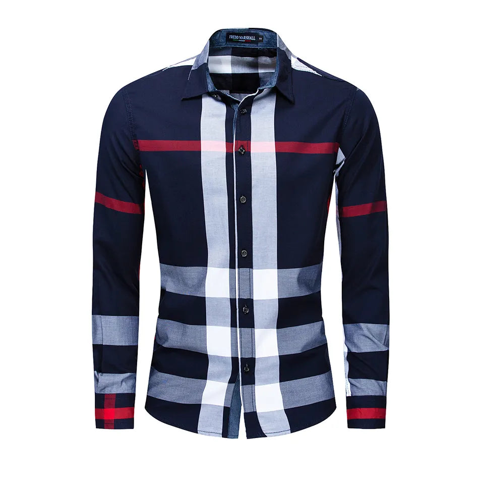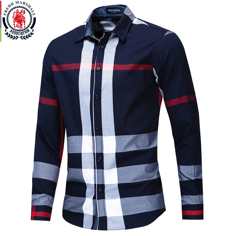 Chemise à carreaux aléatoires pour hommes, 100% coton, nouvelle mode, manches longues, décontractée, boutonnée, tenue d'affaires, hauts sociaux, 2023