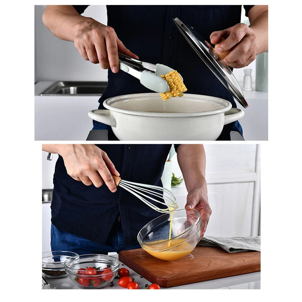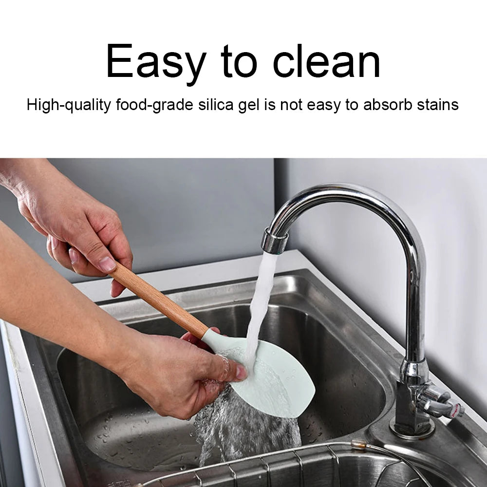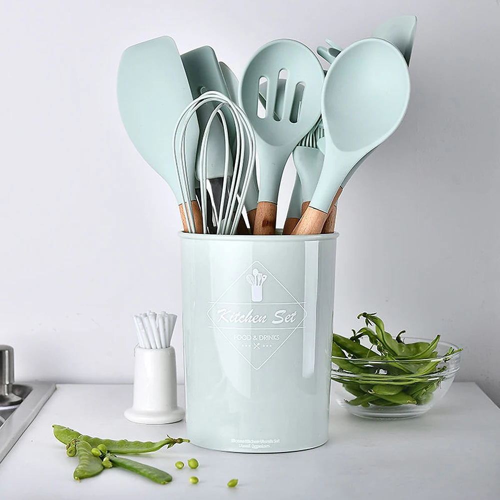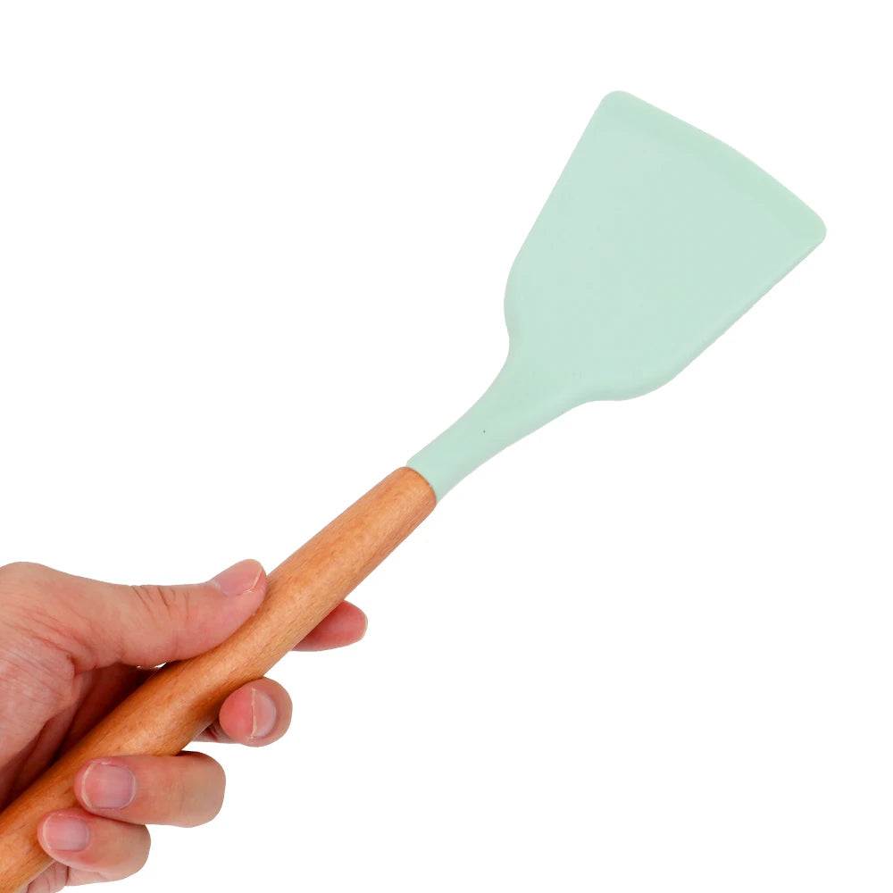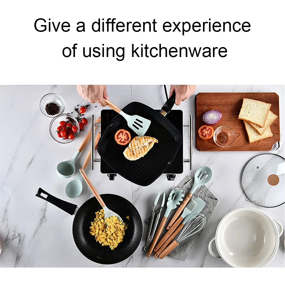 Ensemble d'ustensiles de cuisine en silicone de 12 pièces avec poignées en bois