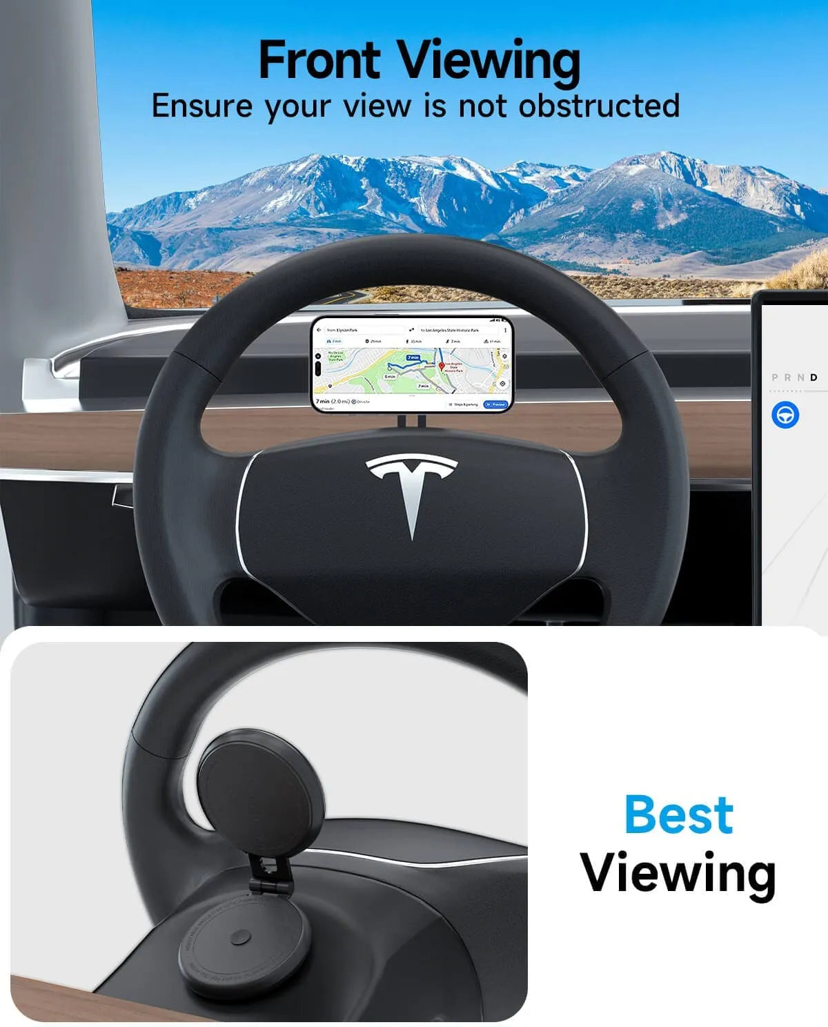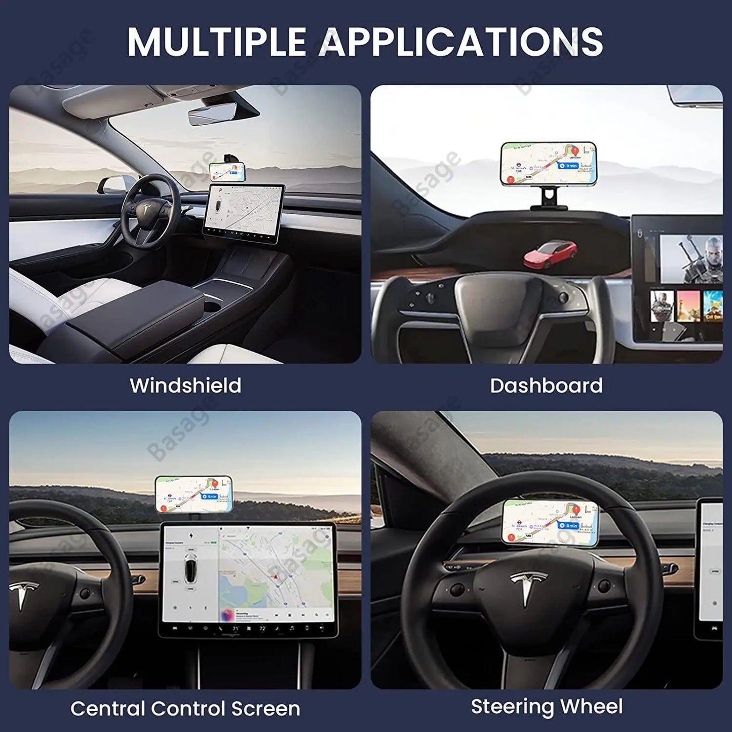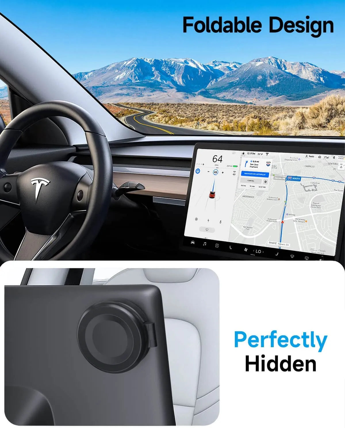 Le support de voiture MagSafe est parfait pour les accessoires Tesla modèle 3 et les accessoires Tesla modèle Y. Bras oscillant entièrement réglable et rotatif à 360° pour optimiser les angles de vision et offrir plus d'options de montage. Vous pouvez le monter des deux côtés de l'écran tactile de votre voiture. Il suffit de faire pivoter l'écrou et d'ajuster rapidement le bras premium pour obtenir l'angle permettant une vue parfaite. Ne bloque pas la vue du conducteur. Le support de téléphone magnétique vous permet également une rotation facile à 360° de l'écran de votre téléphone.