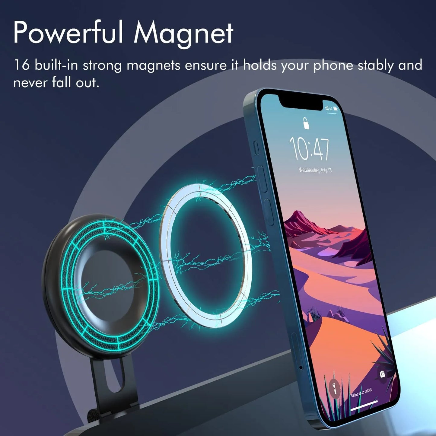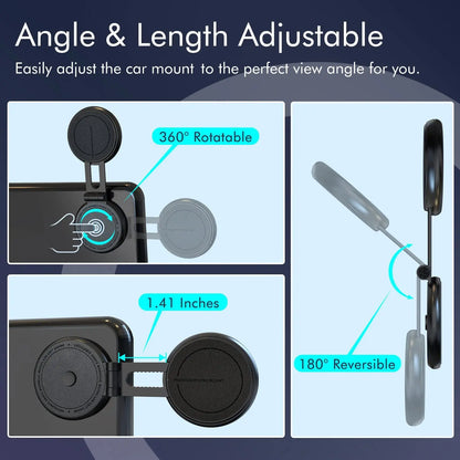 L'angle de ce support de voiture MagSafe est rotatif à 360 degrés, le support est réversible à 135 degrés d'avant en arrière et la longueur du bras métallique de qualité supérieure peut être étendue de 1,41 pouces, faites pivoter facilement l'écran comme vous le souhaitez et ajustez-le pour une vue parfaite. pour toi. Et vous pouvez le plier lorsqu'il n'est pas utilisé.