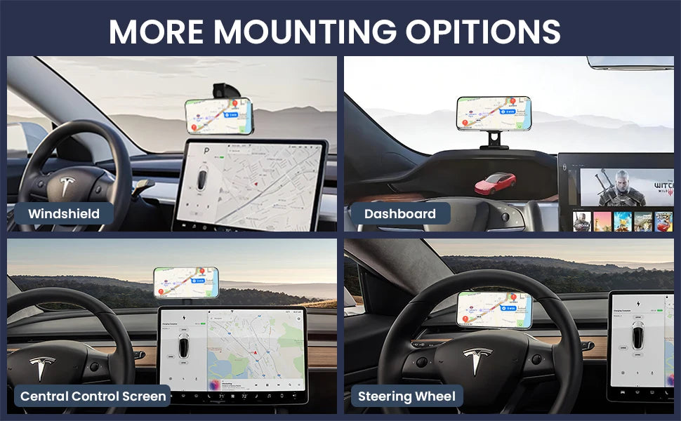 Le support de téléphone est conçu pour les voitures dotées d'un écran central, comme le modèle Tesla 3/X/Y/S, le cacher à l'arrière du filet central le rend invisible et préserve le design de l'intérieur de Tesla. Il peut également être monté sur le tableau de bord ou le pare-brise.