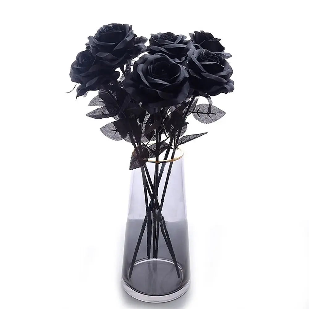 Lot de 5 têtes de roses noires en soie pour décoration de maison et d'événements